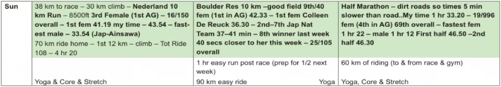 Yoko (insert photo), I first met in 1999 at Balmoral Triathlon Club, a pro marathon runner. She hopped on her bike and placed top 10 in Forster Ironman, the first or second year she did it with a great bike ride – power to weight.